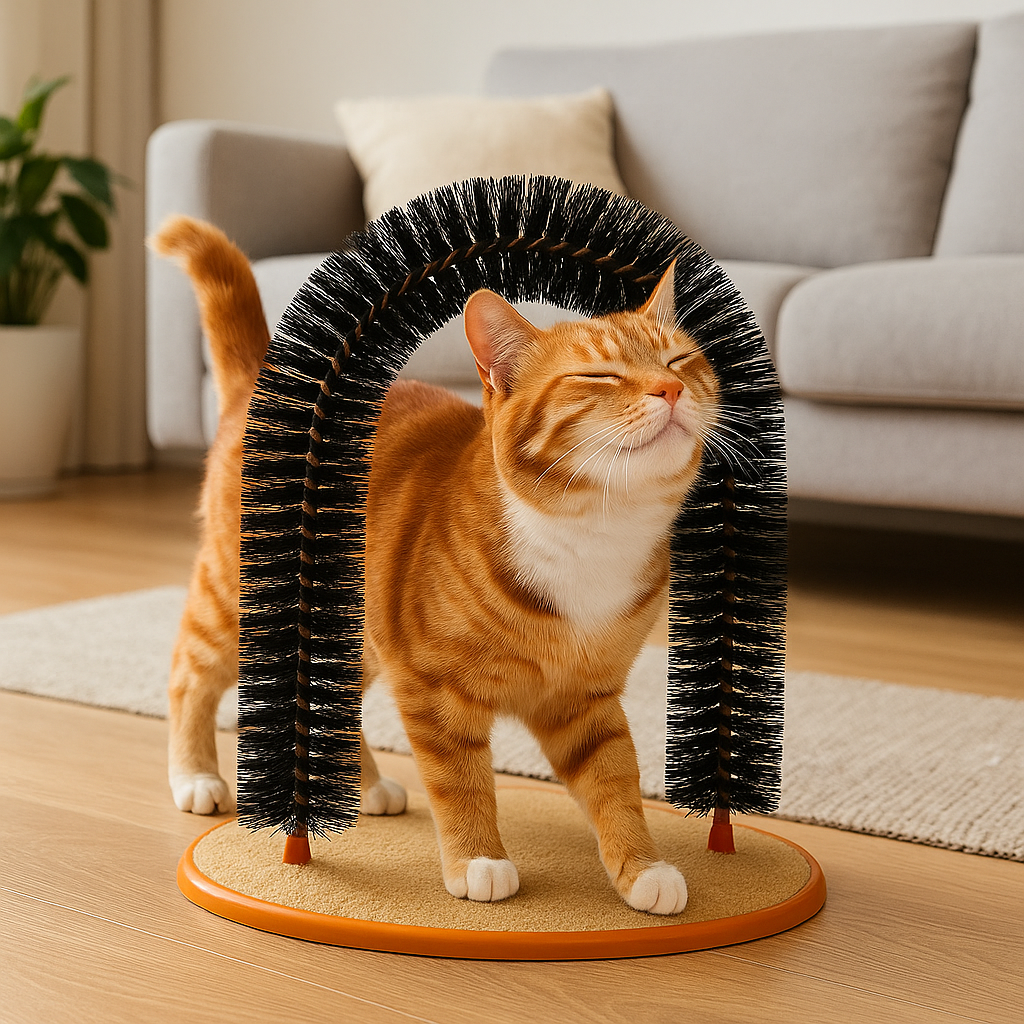 🧼 Self-Grooming Massage Arch: A relaxing arch that massages and brushes your cat while reducing shedding — ideal for daily stress relief and self-care.